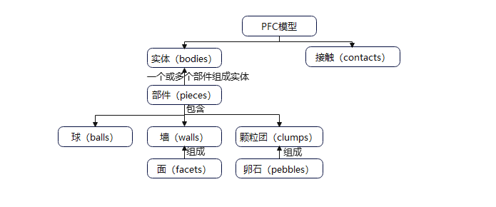 PFC 5.0中的模型由通过力学接触相互作用的主体组成。墙(wall)是由n个三角形分面(Facet)组成的主体。每个分面都是一个部件(piece)。