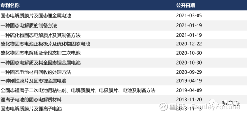 专利储备:公司研发固态电池多年,自2013年起已有相关专利储备。