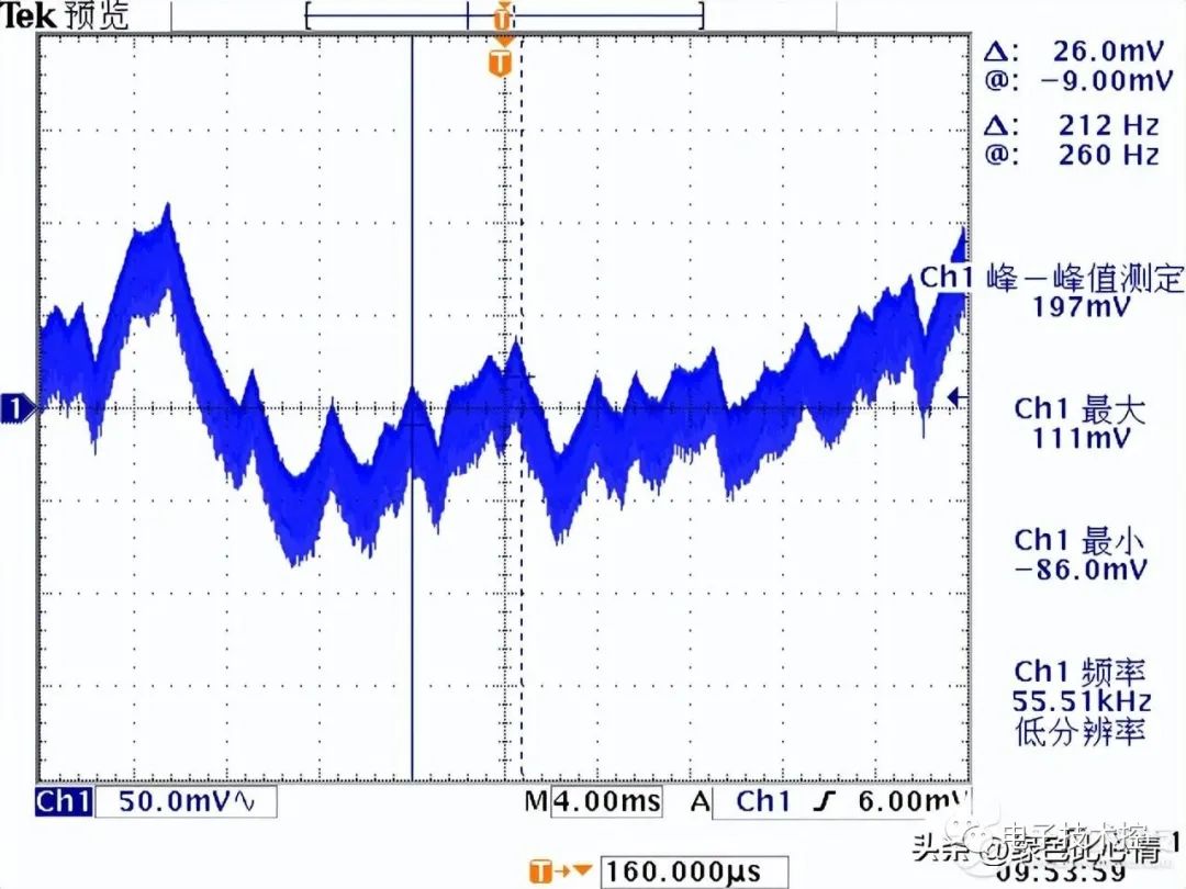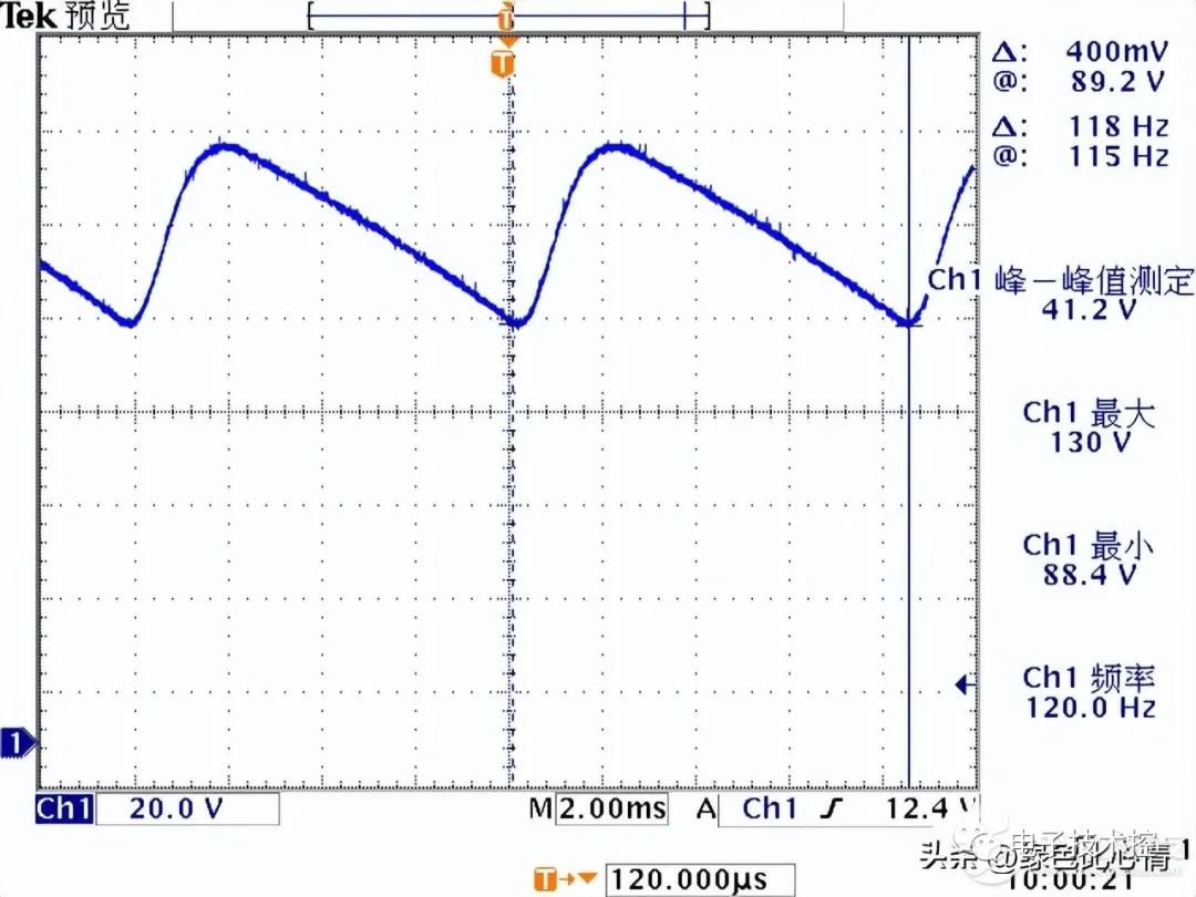 低频纹波是与输出电路的滤波电容容量相关的。由于开关电源体积的限制,电解电容的容量不可能无限制地增加,导致输出低频纹波的残留,该输出纹波频率随整流电路方式的不同而不同。