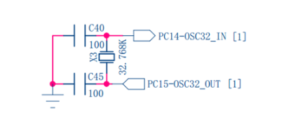 当前V5开发板是用的32768Hz晶振为LSE提供时钟,硬件设计如下: