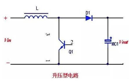 如图是升压型电路。工作过程:①开关管Q1导通时,扼流圈L1储能。这时il=uin/lt(t为扼流圈导通时间)。设导通结束时的电流为il,因此,储能为e=0.5i2l。Q1截止后,il将从il开始减少,在L上感应出左低右高的自感电动势。