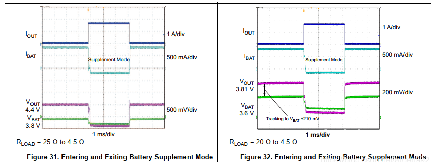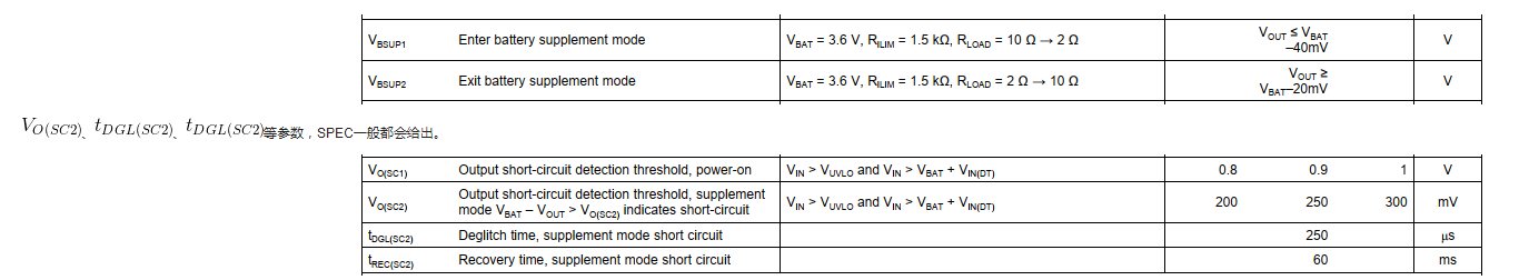 在电池补充模式下,电池给负载的供电电流是不受调节(BAT-FET是完全打开),但是会有短路保护。当VOUT电压比电池电压低