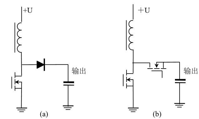 图 4 (a) 二极管整流变换器和(b)同步整流变换器