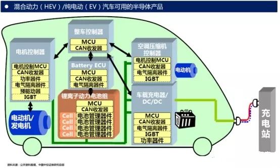 IGBT模块在电动汽车中发挥着至关重要的作用,是电动汽车及充电桩等设备的核心技术部件。IGBT模块占电动汽车成本将近10%,占充电桩成本约20%。IGBT主要应用于电动汽车领域中以下几个方面: