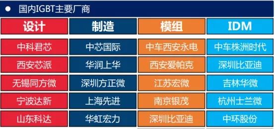 从公司来看,国外研发IGBT器件的公司主要有英飞凌、 ABB、三菱、西门康、东芝、富士等。中国功率半导体市场占世界市场的50%以上,但在中高端MOSFET及IGBT主流器件市场上,90%主要依赖进口,基本被国外欧美、日本企业垄断。