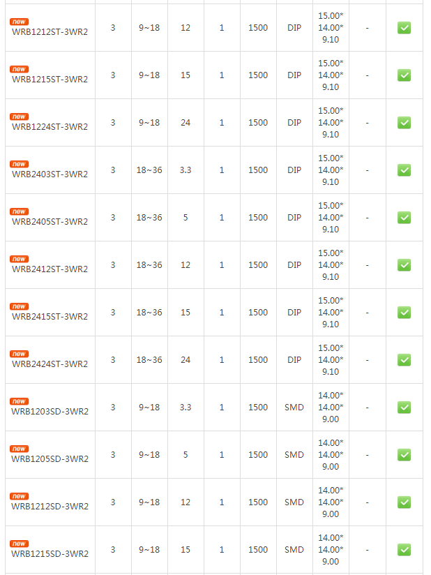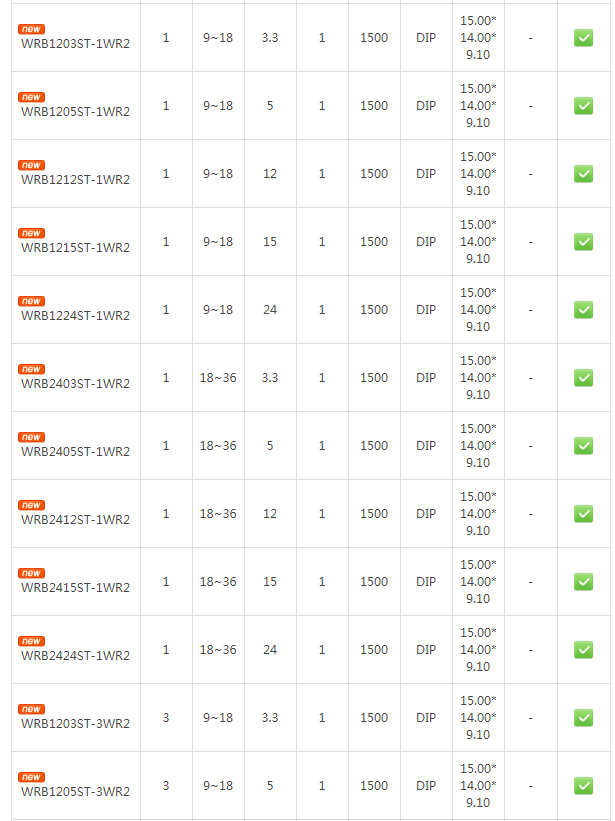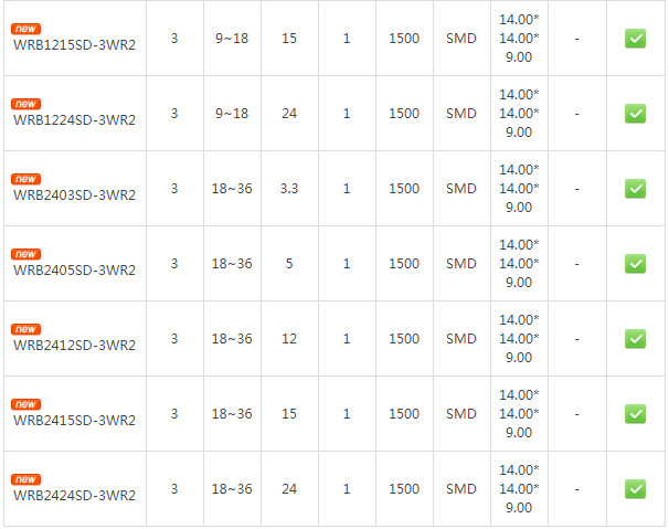 此次推出的WRB系列电源模块,涵盖DIP、SMD两种封装,具有超小的尺寸,较于常规产品体积减小了40%。产品拥有2:1宽输入电压范围,工作温度范围达-40℃ to +85℃,可满足1500VDC隔离耐压,具有可持续短路保护功能,精简客户设备设计,确保客户设备正常运行。