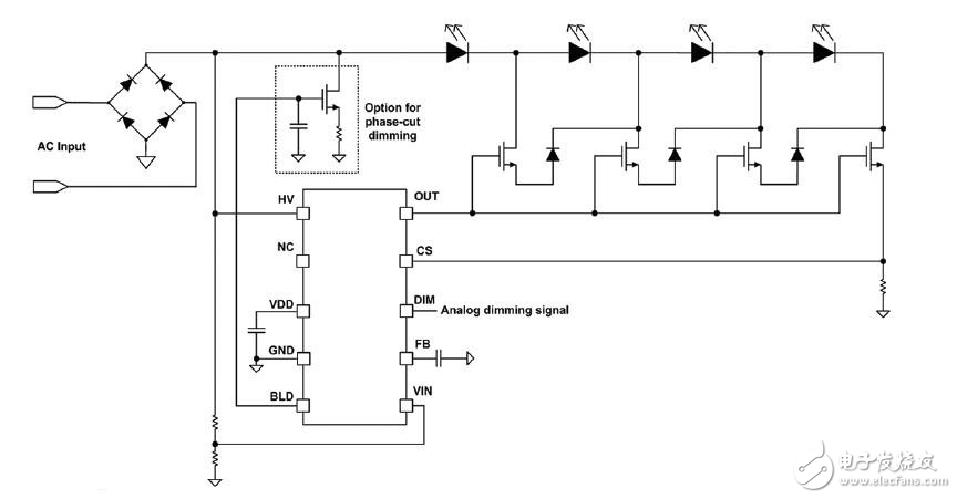 虽然与传统的开关电源法相比,DACD法有显著的进步,但并不是驱动现代LED应用的理想方案。目前市场上仍有许多IC的DACD方案,但这些方案在线路电压调整(line regulation)、散热性能(thermal performance)、突波电阻(surge resistance)、调光能力和成本方面都能改进。