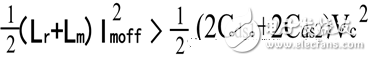 在开关管关断时刻,谐振槽路存储的磁能必须大于两个开关管输出电容完成一次充、放电所需的电能,表示为: