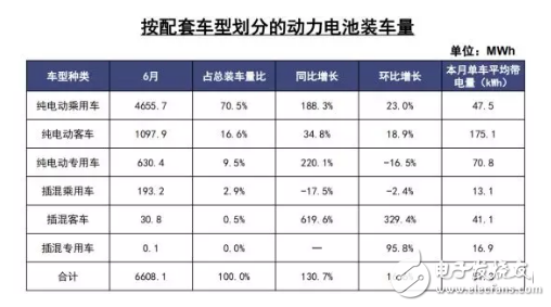 2019年6月,我国动力电池装车量数据显示,我国动力电池装车量共计6.6GWh,同比增长130.7%,环比增长16.6%,同环比增速均较5月份稍有提升;三元电池6月份装车量共计4.7GWh,环比增长27.0%,再次实现正增长,磷酸铁锂电池在专用车领域配套量较5月份稍有下降,6月装车量1.7GWh,环比下降2.9%。