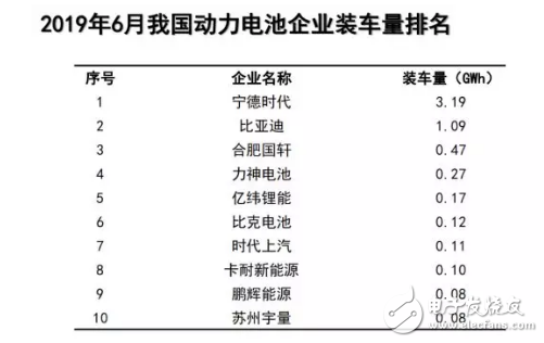 2019年6月我国动力电池装车量数据显示,我国新能源汽车市场共计52家动力电池企业实现装车配套,较5月份增加11家。排名前3家、前5家、前10家动力电池企业动力电池装车量分别为4.8GWh、5.2GWh和5.7GWh,占总装车量比分别为71.9%、78.6%和86.0%。