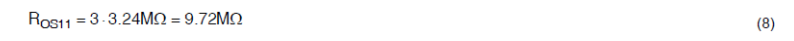 在本例中,选择上分压电阻ROS11,由3个串联的3.24 MΩ,1206 SMT电阻组成,如等式8所示: