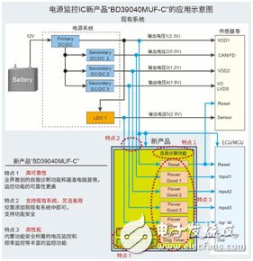全球知名半导体制造商ROHM(总部位于日本京都)面向ADAS(高级驾驶辅助系统)和自动驾驶用的传感器/摄像头、电动助力转向系统等需要极高安全性的车载应用电源系统,开发出支持功能安全*1的、内置自我诊断功能(BIST: built-in self test)的电源监控IC“BD39040MUF-C”。