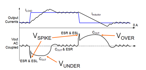 下文图4所示为每个输出电容元件对降压转换器负载瞬态性能的作用机制