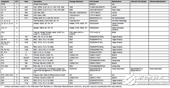评估模块bq24076/8 EVM材料清单: