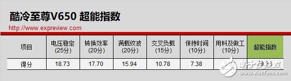 按照我们当前的测试标准,酷冷至尊V650 Gold电源的超能指数为90.55分,已经跨入到了顶尖级电源的水准中,而旧版V650的分数则是79.53分,接近于优秀水准。