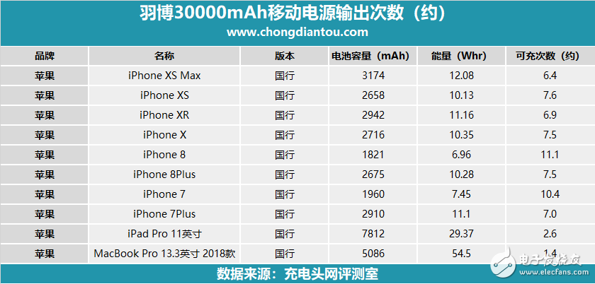 相信大家还是挺关心这款30000mAh大容量移动电源能给自己的手机充几次电,小编帮大家算了算几款热门机型并做了一份表格,大家可以作为参考。