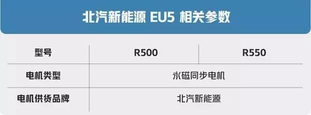 北汽新能源自研的永磁同步电机目前已经出现在旗下北汽新能源 EU5 车型上,并且这款车型拥有 R500 与 R550 两款车型,其中 R500 的综合续航里程达到了 416km,R550 更是高达 460km,并且这款车型电机的最大输出功率达到了 160kW,补贴后最高 16.19 万的售价也提升了它的购买价值。