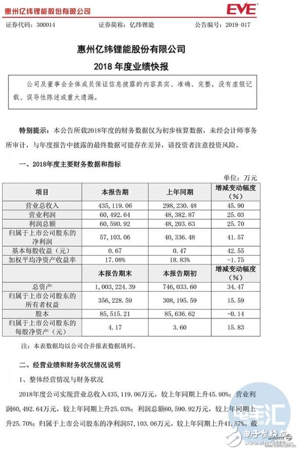 2月28日,亿纬锂能、国轩高科同日发布2018年业绩快报。