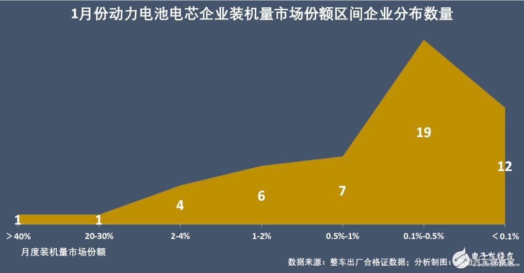 动力电池企业“头部大、尾部绵延细长”的市场格局依然持续,1月份市场份额不足0.5%的电芯企业有31家,占1月有效装机企业的6成多。