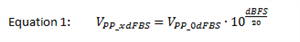 让我们使用图6和图7来帮助我们解释结果并将dB低于满量程(dBFS)转换为PSRR规范。假设基波幅度为-2dBFS。由于图7中的ADC3444数据手册告诉我们0dBFS(或满量程)是2Vpp,我们可以将dBFS转换为Vpp。这可以通过下面的等式1来实现: