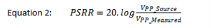 将数字插入等式2给出了PSRR(电源抑制比),其中-2dBFS基本幅度和电源上的1MHz干扰信号。