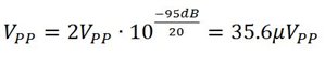 系统设计公差将揭示维持所需性能的最大可接受刺激。我们在这里考虑最差的杂散不能超过-95dBFS。这意味着使用16dB最坏情况PSRR并使用下面的等式1和2,我们可以确定最大允许电源纹波。