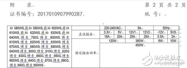 经过查询3C认证的证书,我们发现这个600WS实际上是送测一个额定450W电源,甚至送测版本跟出售版本是否一致也不得而知。整个产品介绍都充满谎言。