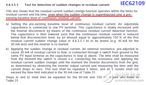 这时,我们再来反观IEC62109中的检测要求。测试模型中其实并没有检测高频容性漏电的要求。有的则是在高频容性漏电的基础上突加阻性漏电,以检验这时候突变漏电的可靠性。