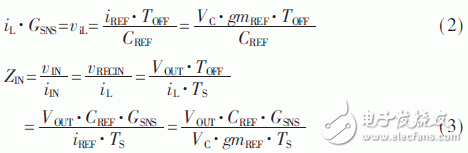其中D是功率管开关信号占空比,TS是开关周期时间。输出电压VOUT的直流分量被外部的电压环路很好地控制,大量的电解电容用于存储能量,降低纹波,同时消除二次谐波,VOUT的大小可以近似地当作一个常数。因此,如果将等效于整流后的输入电流iRECIN的Boost电感电流iL控制成和关断时间TOFF成比例关系,那么等效输入阻抗ZIN就是一个恒定的电阻,这就意味着可以获得单位功率因数校正[9-10]。