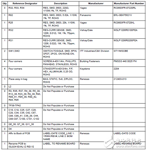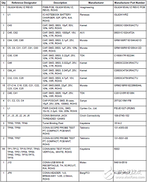 评估板ISL9241EVAL1Z材料清单: