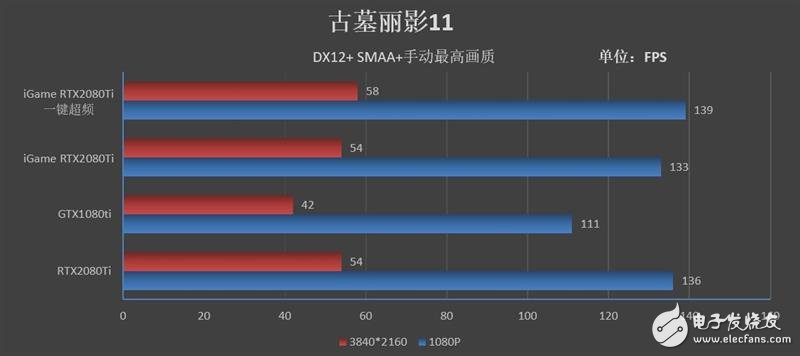在1080P分辨率下,OC状态下的iGame RTX 2080 Ti Vulcan的帧率为139FPS,领先公版3FPS;到了4K分辨率时,可以领先4帧。