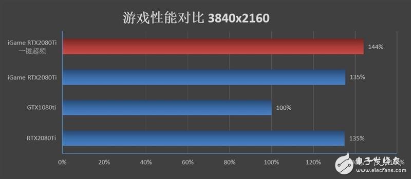 到了4K分辨率,一键超频后的iGame RTX 2080 Ti Vulcan相比公版领先优势扩大到了7%,相比GTX 1080 Ti更是能够大幅度领先44%。