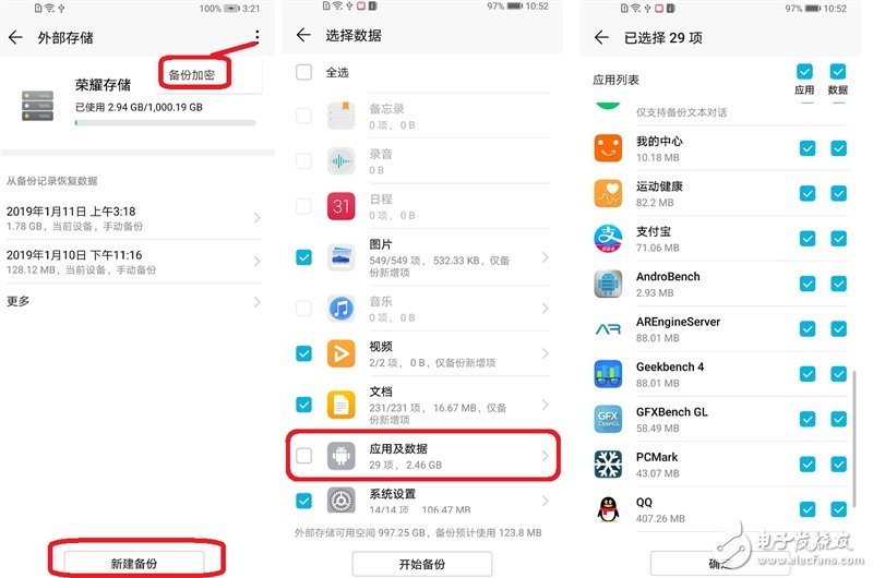 点击“新建备份”按钮,可以选择将手机存储中的所有数据进行备份,甚至连应用程序及其数据都可以进行备份。也就是说类似QQ、微信这样的聊天工具的聊天记录都可以被备份下来。