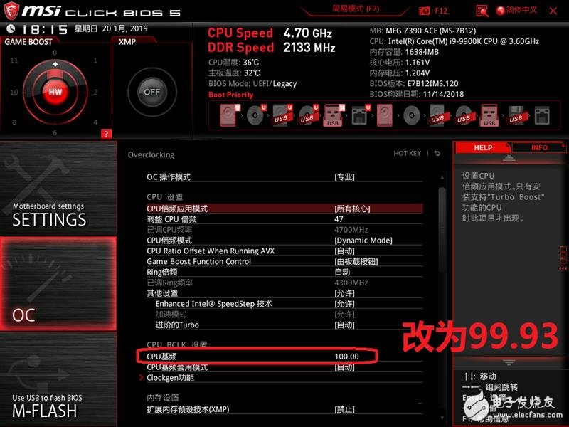 另外有一点需要注意,微星的几块Z390主板在超频时,CPU基频会自动加到101MHz左右,会降低超频的成功率,需要手动调整为99.93或者任意其他接近的数值才可以。
