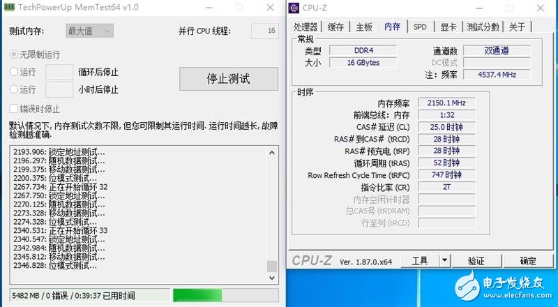 由于主板自动家里0.8MHz外频,我们在BIOS设置了4266MHz频率实际上达到了4300MHz,在使用MemTest64进行稳定性测试,运行39分钟后依然0错误,超频后的稳定性良好。