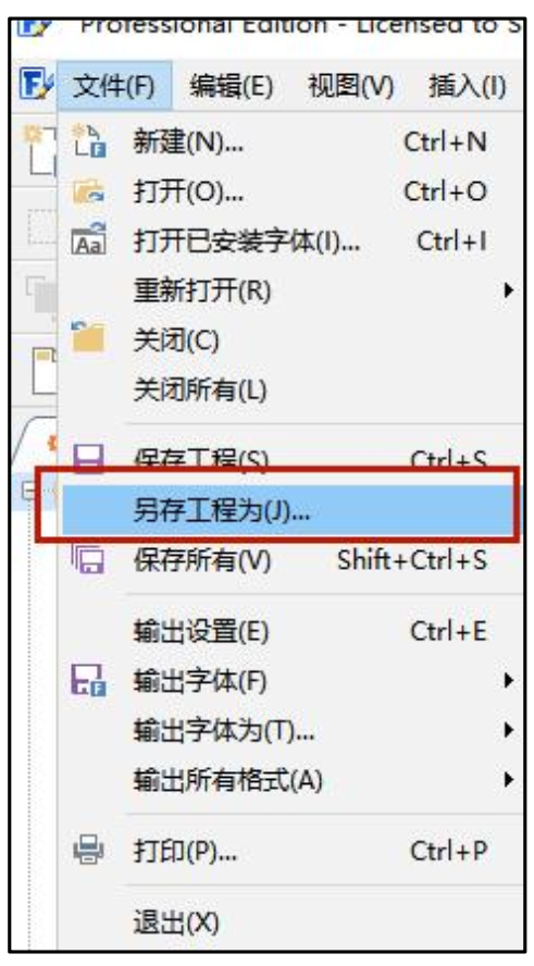 菜单栏选择文件,点击其中的“输出字体为” “输出电脑字体” ,合并后的字库和配置导出属性后点击Export即可导出如图3-10,导出文件另存为工程可以到文件夹中如图3-11。