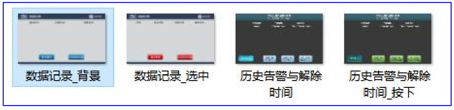 1.历史告警:当从机产生报警,数据记录控件会显示当前的告警和触发时间。当报警解除时,告警数据仍显示在表格里。在配置 MODBUS 协议时,如果开启存储设置,可掉电保存告警数据。