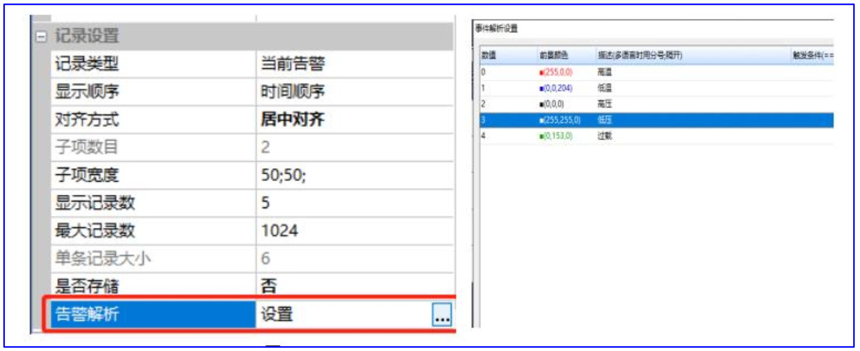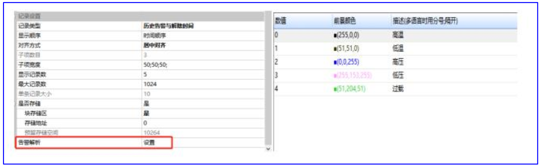 (2) 点击告警解析,对告警进行文字显示,如:定义数值 0,为“高温” ,颜色为