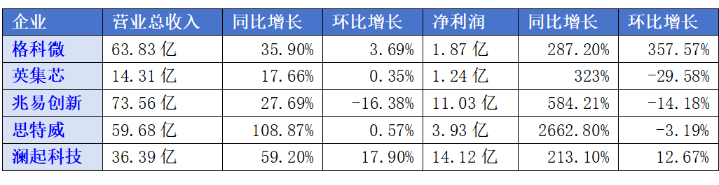 电子发烧友网报道(文/李弯弯)近日,国产半导体企业相继发布2024年年度报告,包括格科微、思特威、兆易创新、英集芯、澜起科技等,多家企业实现营业收入和净利润大幅上涨,如格科微、英集芯、兆易创新、思特威等,净利润增长均超200%,最高超2000%。半导体企业业绩向好,除了手机、PC等市场呈现复苏信号之外,还在于近些年来国内半导体企业拥抱高端市场,各家公司推出的高端芯片逐渐带来业绩增长。