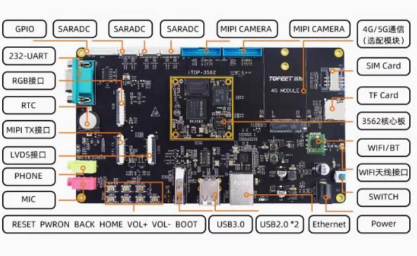 iTOP-3562开发板采用瑞芯微RK3562处理器,主频2.0GHz,采用四核A53+Mali G52架构,主频2GHz,内置1TOPS NPU算力,具有多个嵌入式硬件引擎,以优化高端应用的性能。