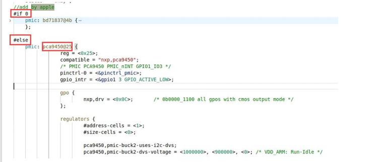 源管理芯片注释掉,替换为 pca9450。修改为如下图所示: