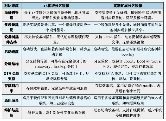 rk传统分区适合启动速度要求高且硬件配置固定的系统,如工业设备和消费电子产品,而定制分区更适合多设备环境和需要频繁更新的系统,如物联网和智能设备,减少了镜像管理和维护的复杂性。