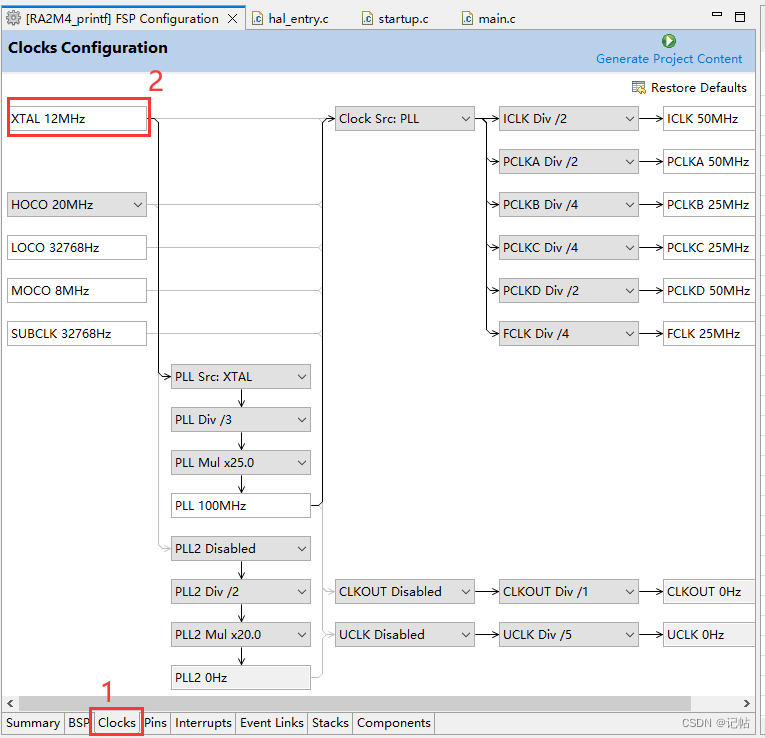 开发板上的外部高速晶振为12M.