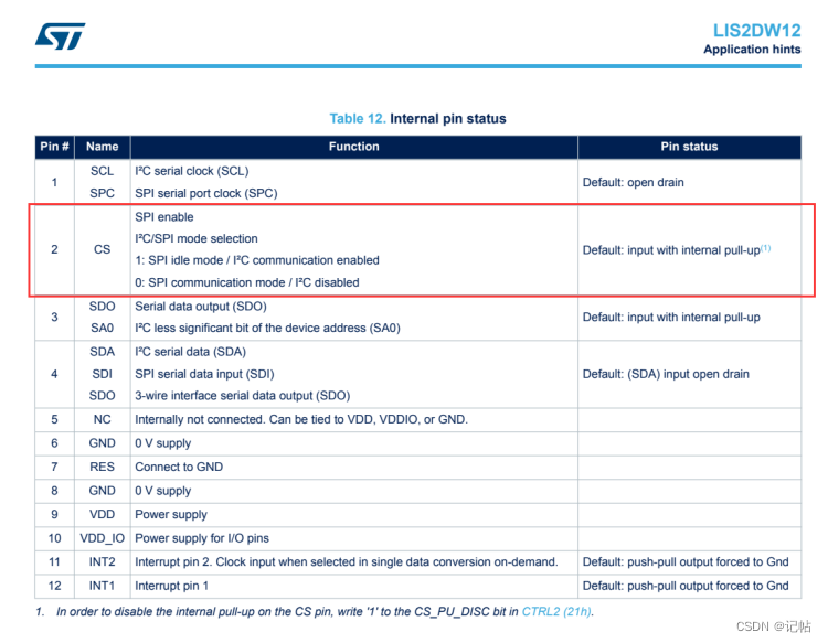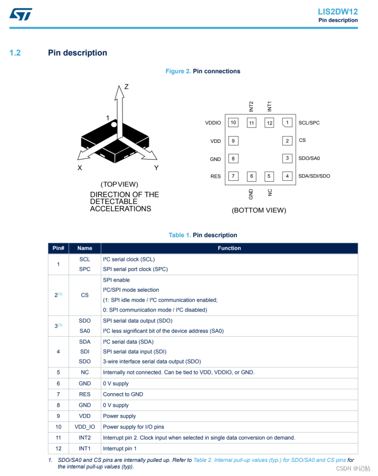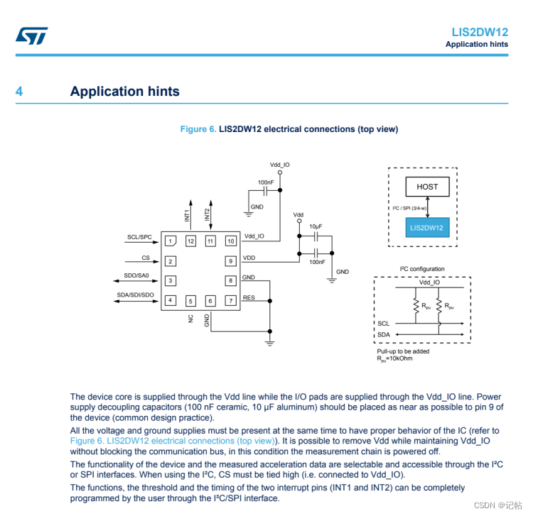 对于LIS2DW12,可以使用SPI或者IIC进行通讯。 最小系统图如下所示。