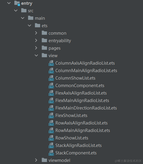 │ │ ├──StackAlignRadioList.ets // 自定义Stack容器设置对其方式属性