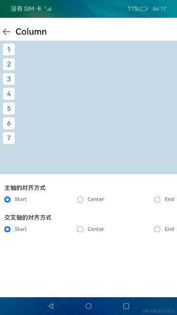// ColumnMainAlignRadioList.ets @Component export struct ColumnMainAlignRadioList { ...