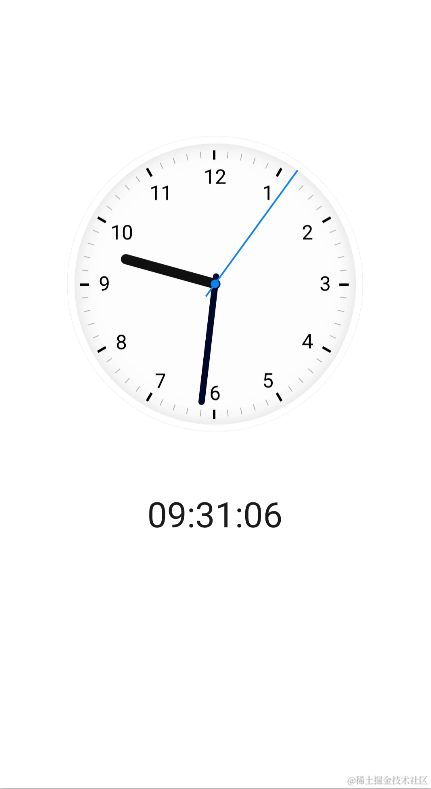 时钟App是一款显示实时时间的应用,显示效果如下图所示: