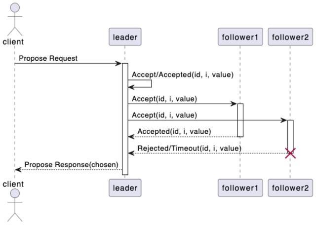 在这个时序图中,我们可以了解到 Multi-Paxos 协议达成共识的流程:
