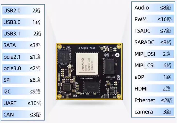 Audio:≤8路,4x I2S/PCM/TDM,2x SPDIF(8ch),8ch PDM