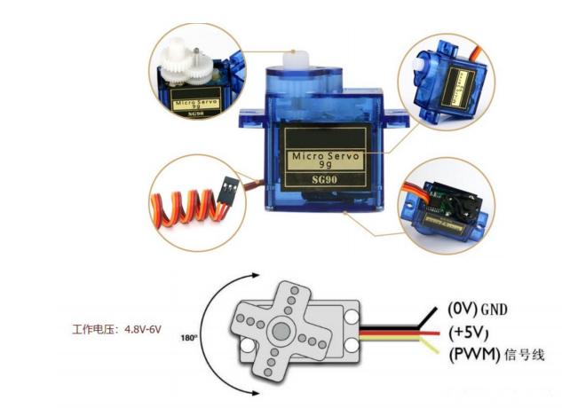 常见的舵机转向角度有 0-90 度,0-180 度,0-360 度,可以用在垃圾桶项目开盖用,智能小车的全比例转向,摄像头云台,机械臂等。